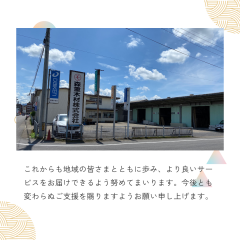 長きにわたり事業を続けてこられたのは、ひとえに地域の皆さまの温かいご支援とご信頼のおかげです。